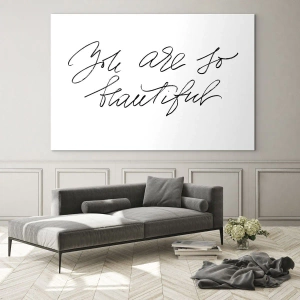 The quote "You are so beautiful" is an inspiring message presented in an elegant, calligraphic style. The black and white image catches the eye with its simplicity and elegance. It's a perfect choice for those who want to introduce a subtle decoration full of positive energy into their interior. The black and white letters with their fluid shapes create a unique effect that blends perfectly with modern spaces.