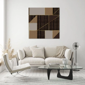 Mosaic of brown, gold, and beige elements creates an abstract pattern that perfectly suits modern interiors. Gold accents combined with subtle shades of brown give the image an elegant and sophisticated character. This painting is a perfect example of modern art that combines simplicity of form with a richness of color.