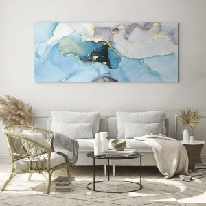 Glass picture - Study in Grey and Turquoise Encounter - 90x30 cm