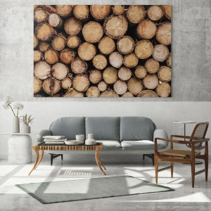 The wood motif has been a fixture in interior design for years, lending them coziness, warmth, and authenticity. This painting is dominated by a raw, natural style that harmonizes perfectly with rustic, Scandinavian, and modern minimalist interiors. The tightly arranged tree trunks create a graphic structure that can be both a background and a decorative focal point. The warm colors of wood bring harmony to the space and emphasize the power of nature.