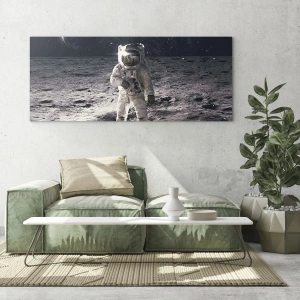Glass picture - Astronaut on the surface of the Moon with Earth in the background - 70x50cm - Greetings from the Moon - Modern wall decoration for the living room and bedroom ARTTOR