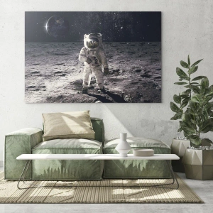 Wall painting - Greetings from the Moon - Astronaut on the surface of the Moon with Earth in the background