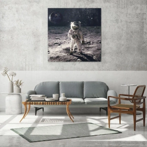Space motifs are becoming increasingly popular in interior design. Phrases like "glass painting," "wall decoration," and "glass painting" are frequently searched for by enthusiasts of modern solutions. The "Greetings from the Moon" painting is a perfect option for those who want to bring a bit of cosmic atmosphere to their space.