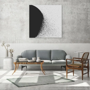 - A modern abstraction depicting a black mass disintegrating into tiny particles against a white background. A simple yet powerful motif, perfectly suited to minimalist and designer spaces.
