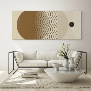 Glass picture - Geometric composition with waves and circles in beige colors - 70x50cm - About the Origin of Geometrical Figures - Modern wall decoration for the living room and bedroom ARTTOR