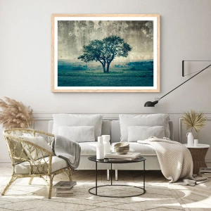 Poster in light oak frame - Apple Tree in Blue? - 50x50 cm