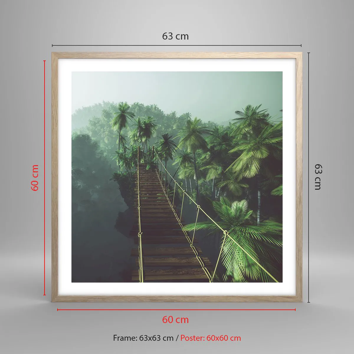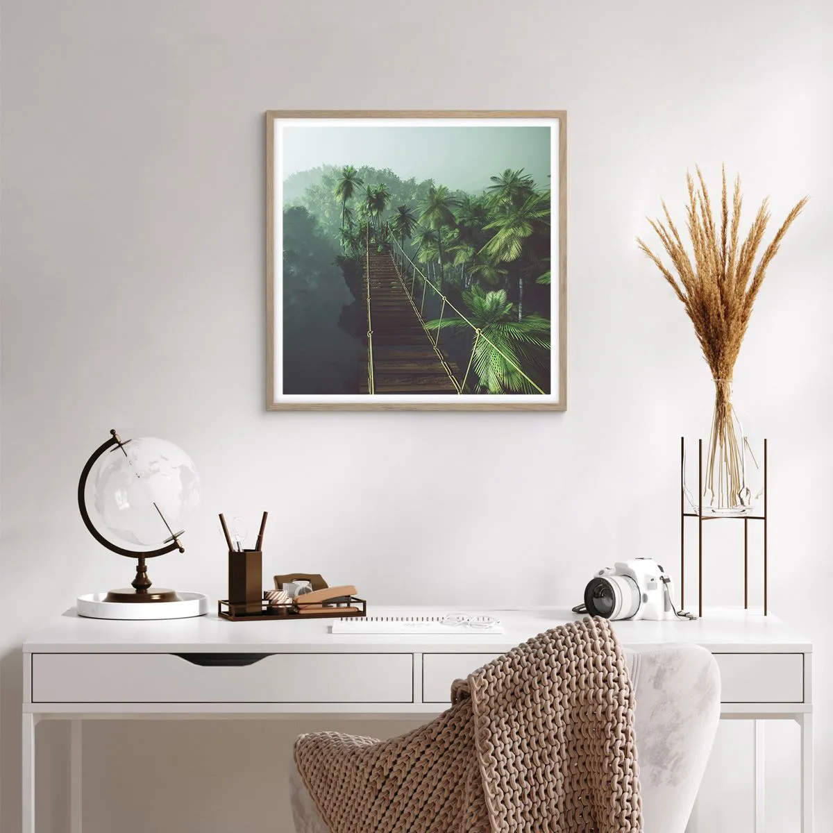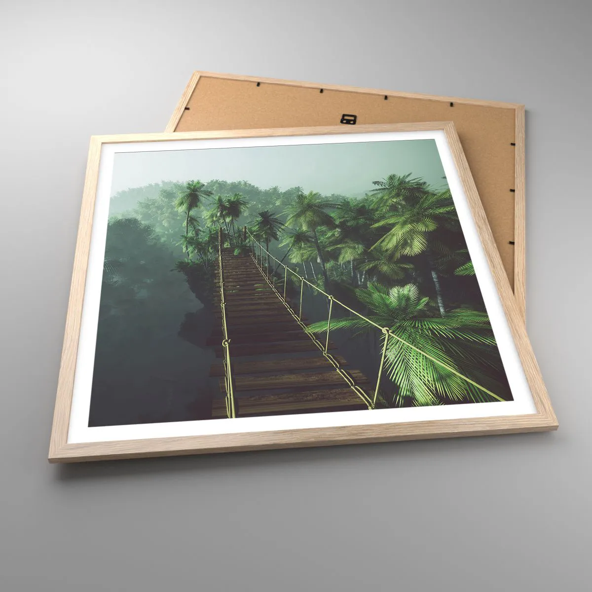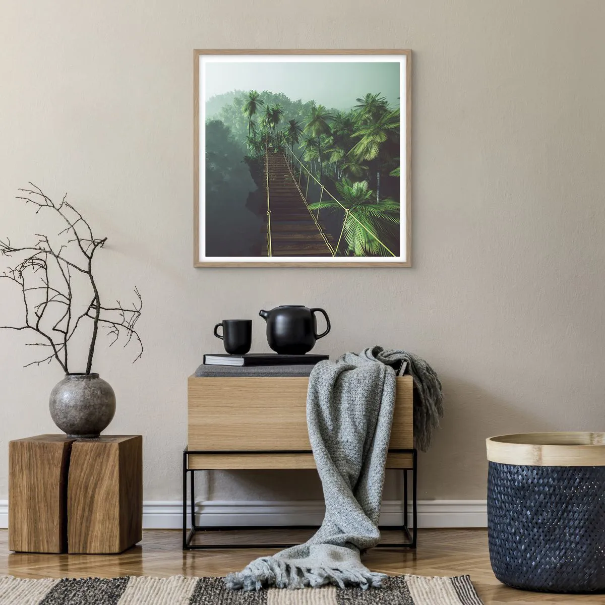 Poster in light oak frame - Hanging Bridge in the Green - 60x60 cm