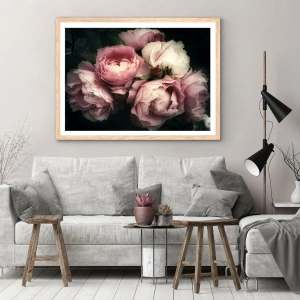 • Flowers, Peony, Bouquet, Botany, Flowers, For the office, For the study, For the dining room, For the bathroom, For the hall, For the living room, For the bedroom, Black, Pink, Square