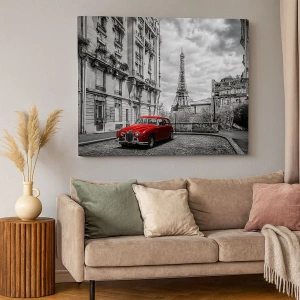 The canvas is stretched over the frame. The sides and edges of the picture are printed to form a continuation of the image. The painting is ready to hang on the wall. Each product comes with a hanger attached to the frame and a mounting kit (screw + wall plug).