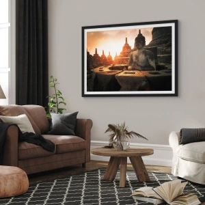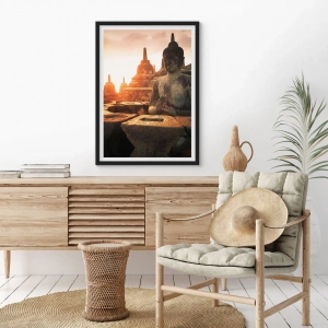 - This poster depicts a Buddha statue against a backdrop of temples at sunset, showcasing the harmony, spirituality, and beauty of Asian culture. It's an ideal choice for interiors conducive to relaxation and meditation.