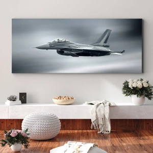 - This painting depicts a fighter jet in flight against a cloudy sky. A striking and dynamic decoration, perfect for modern interiors with character.