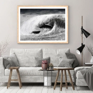 Poster in light oak frame - Wrath of the Ocean - 100x70 cm