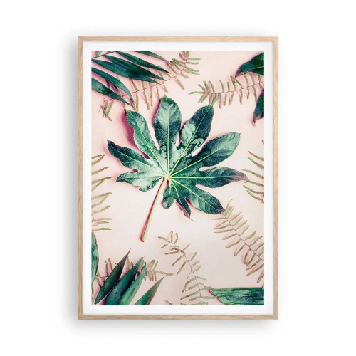 Poster in light oak frame - Study in Green on Pink Background - 70x100 cm