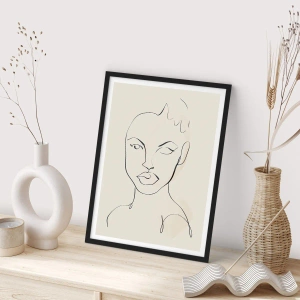 - The "Abstract Portrait" poster features a minimalist line art drawing of a face against a subtle, light background. Its simple, elegant design complements modern interiors. It comes with a black frame.