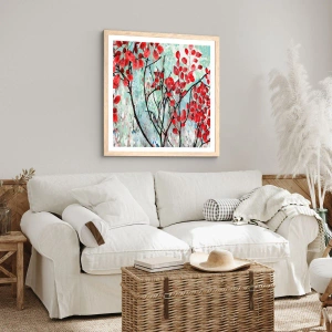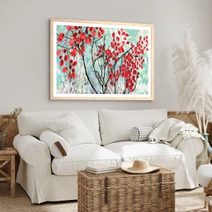 Poster in light oak frame - Tree in Scarlet - 50x40 cm
