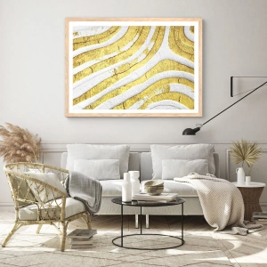 Poster in light oak frame - Composition in White and Gold - 50x50 cm