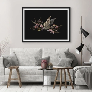 Poster in black frame - Exotic, Embroidered Bird - 70x50 cm
