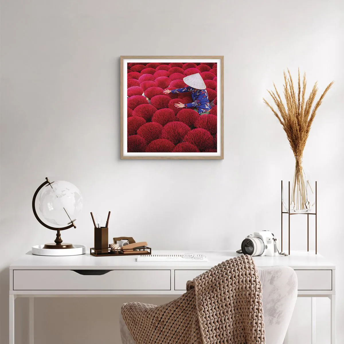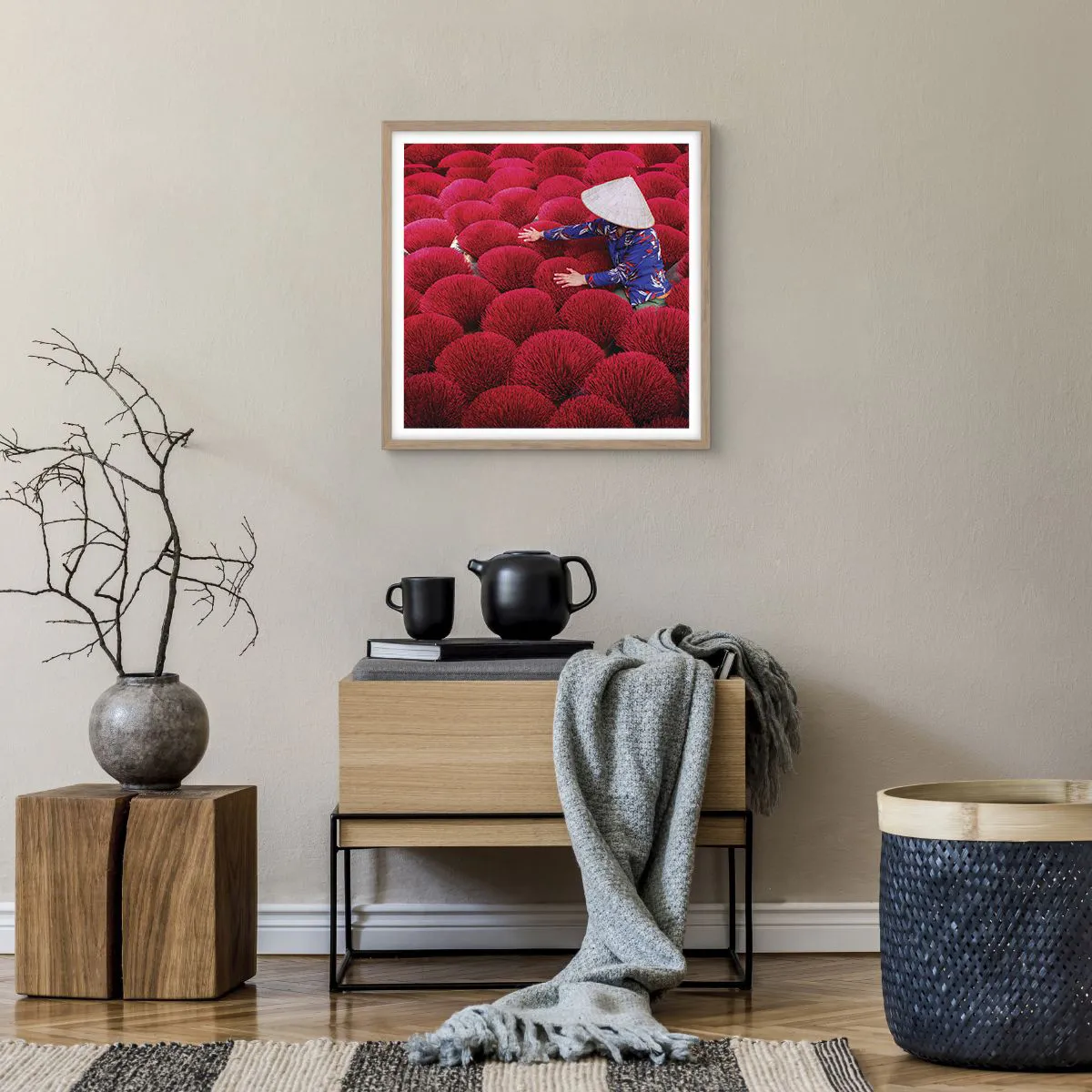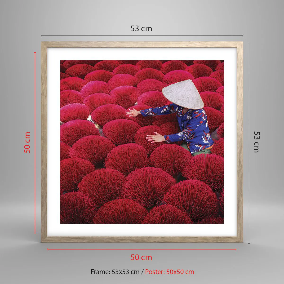 Poster in light oak frame - In the Rice Field - 50x50 cm