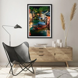 Poster in black frame - Evening on a Chinese Street - 50x50 cm