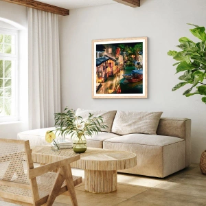 Poster in light oak frame - Evening on a Chinese Street - 50x50 cm