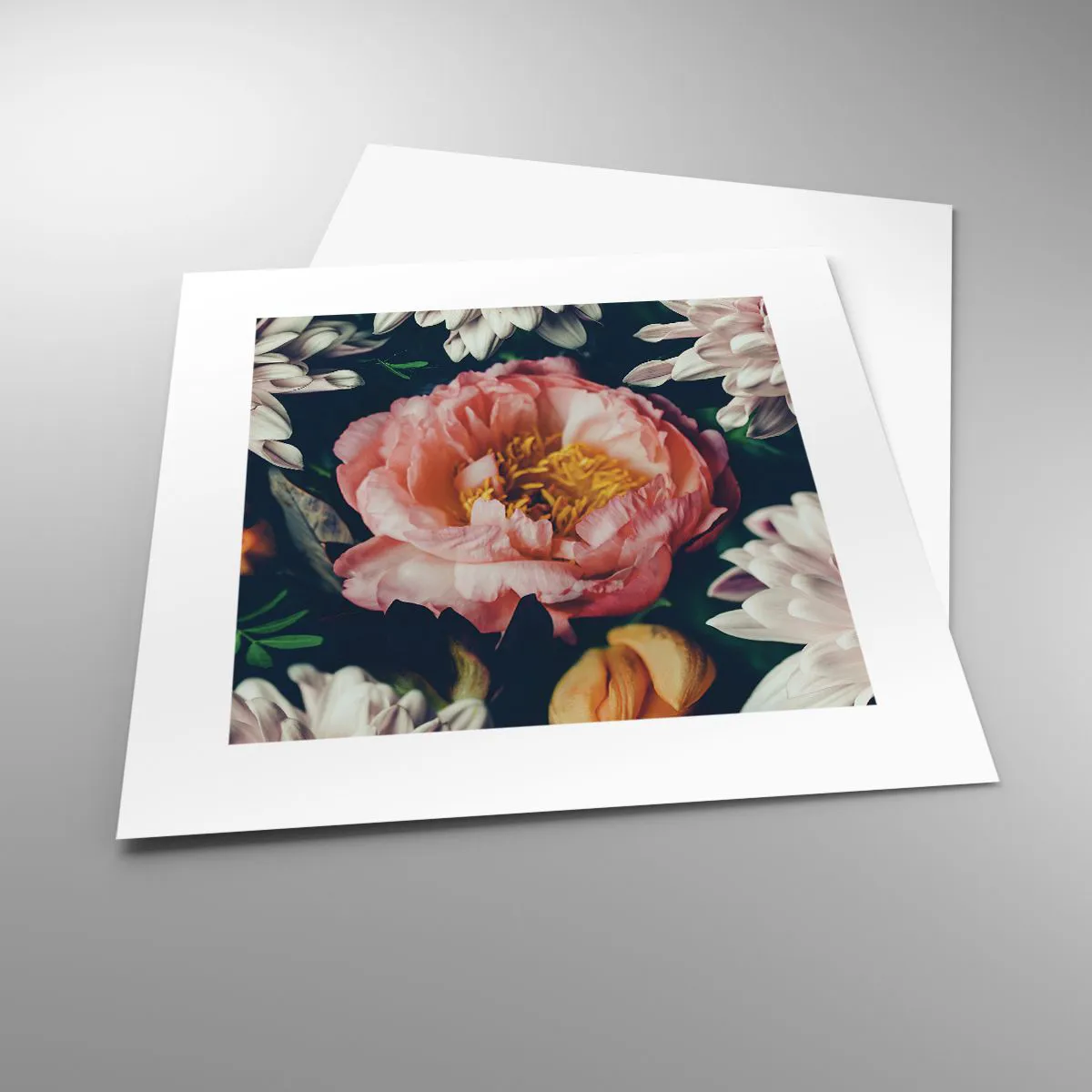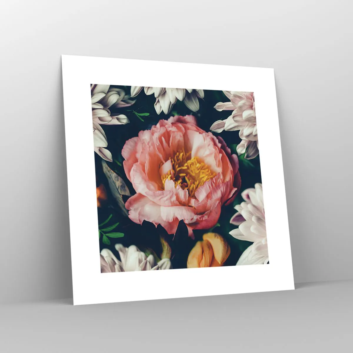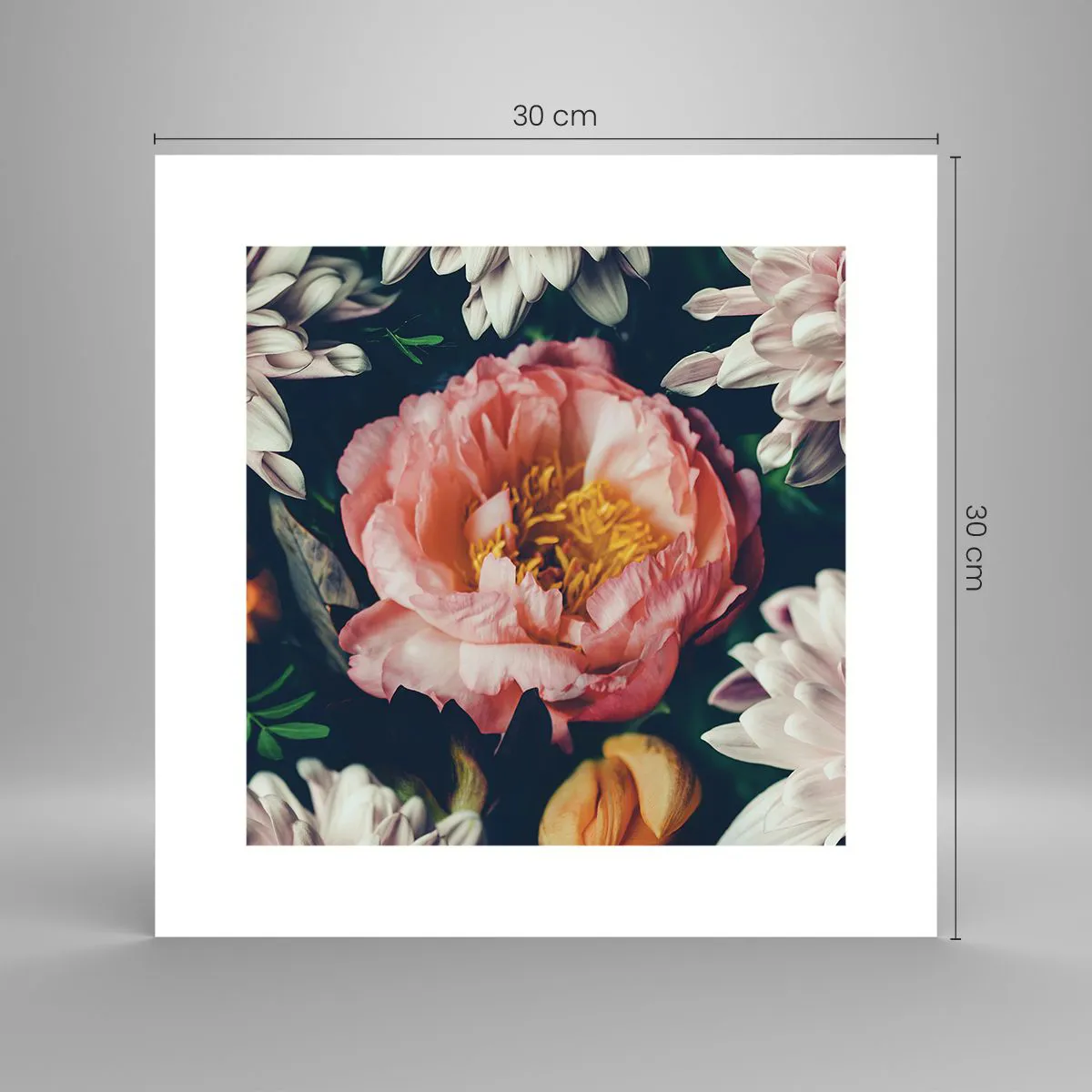 • Flowers, Peony, Flower Bouquet, Botany, Flowers, Nature, For the office, For the study, For the dining room, For the hall, For the living room, For the bedroom, White, Black, Orange, Square