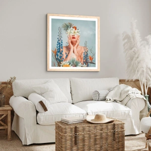 Poster in light oak frame - Woman – Flower - 91x61 cm