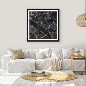 - This modern poster features a black marble motif and delicate gold veins, perfect for accentuating the elegance of any interior. It includes a black frame, ready to hang.
