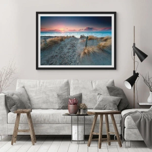 - This poster depicts a beach path at sunset overlooking the sea. It adds a sense of peace and harmony to any interior.