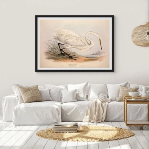 • Bird, White Heron, Art, Art, Animals, For the office, For the study, For the dining room, For the hall, For the living room, For the bedroom, White, Grey, Vertical