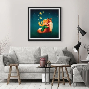Poster in black frame - A figure with a fox in a magical scenery of stars - 50x70cm - Little Prince - Modern wall decoration for the living room and bedroom ARTTOR