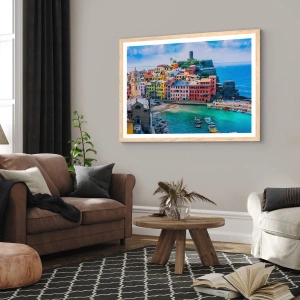 Poster in light oak frame - Magical Mediterranean Town - 40x30 cm