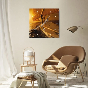 Wall clock - Clock on glass - Golden Evening after a Colourful Day - 40x40 cm