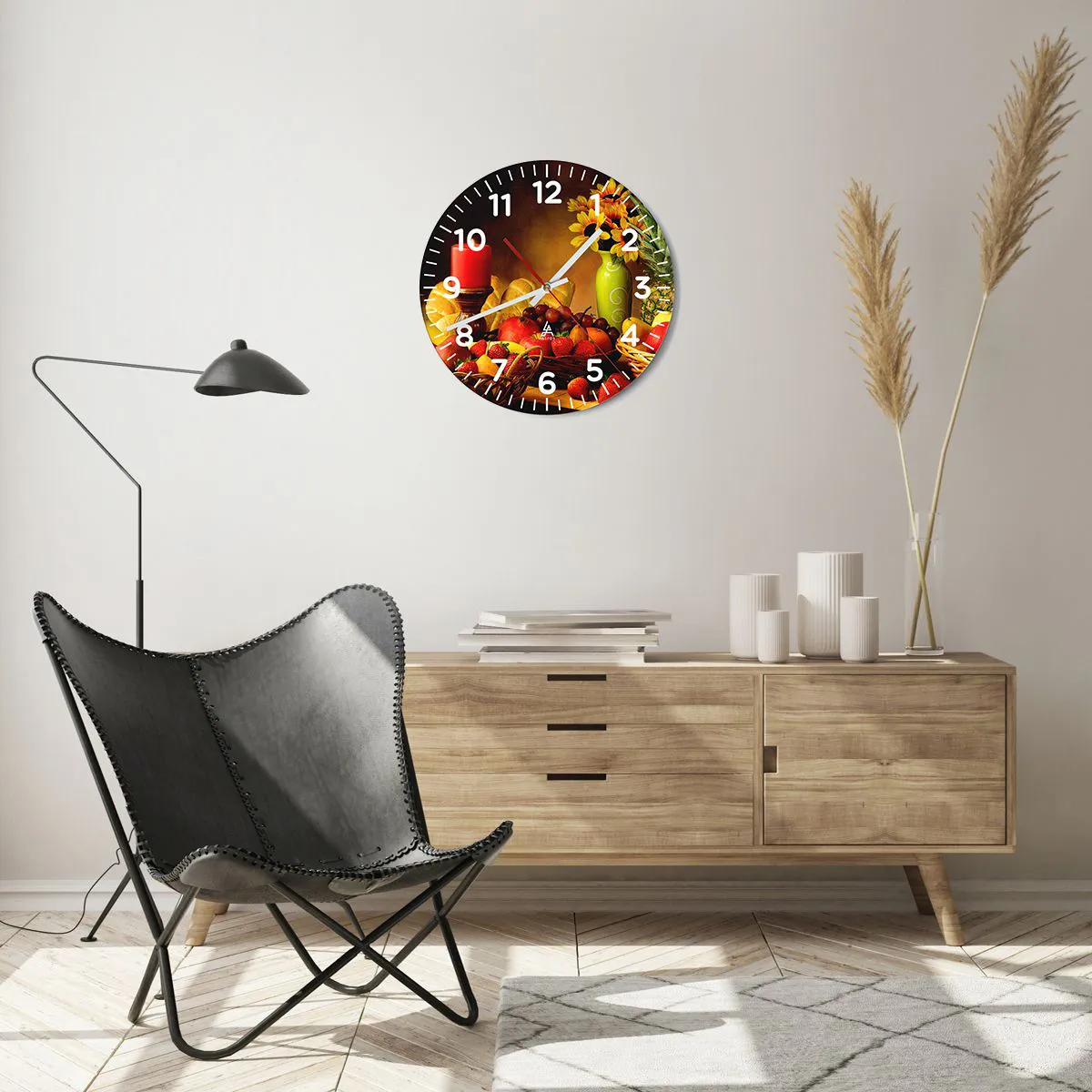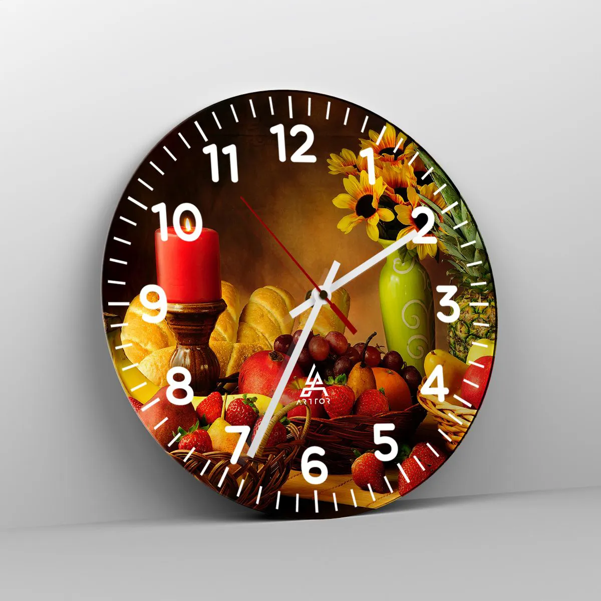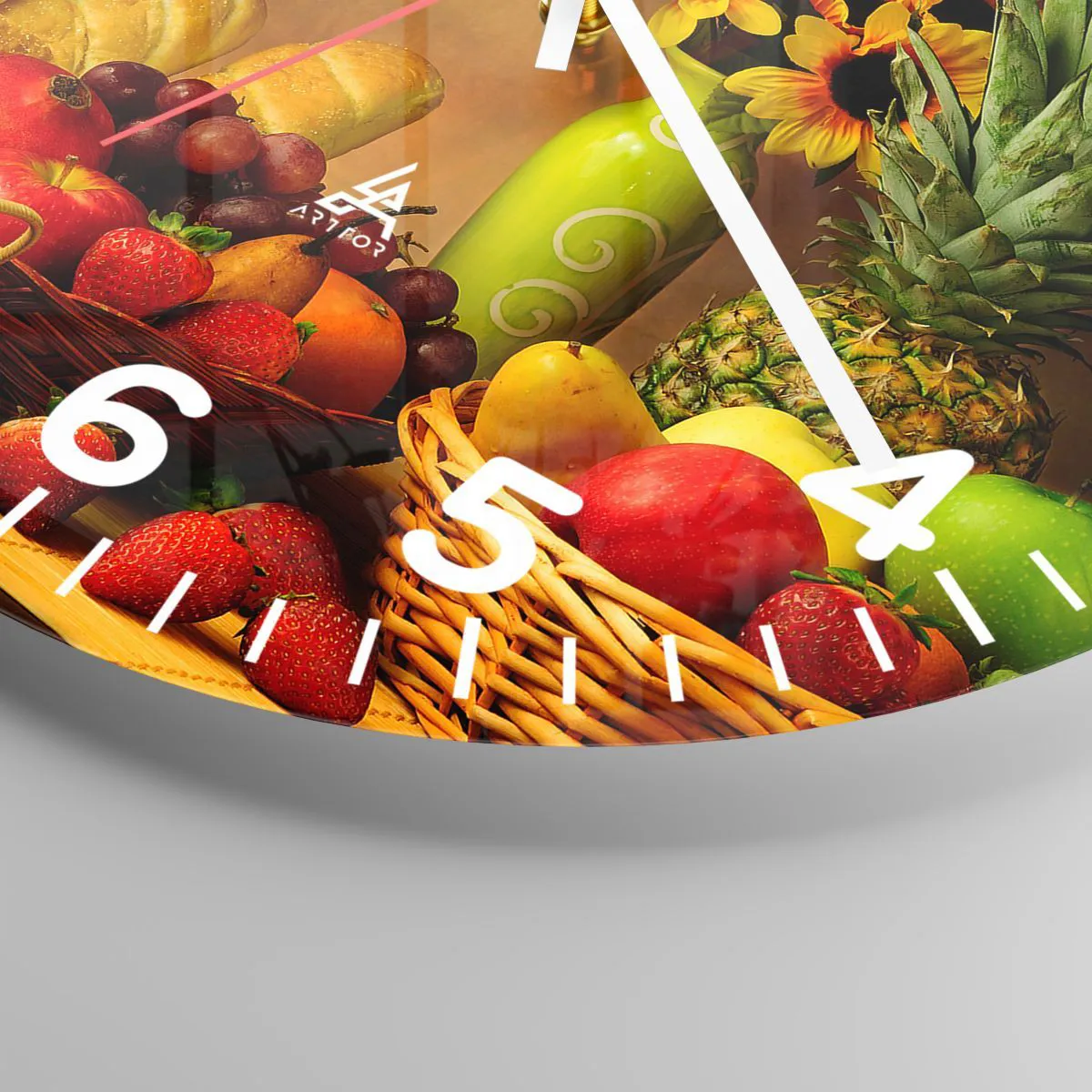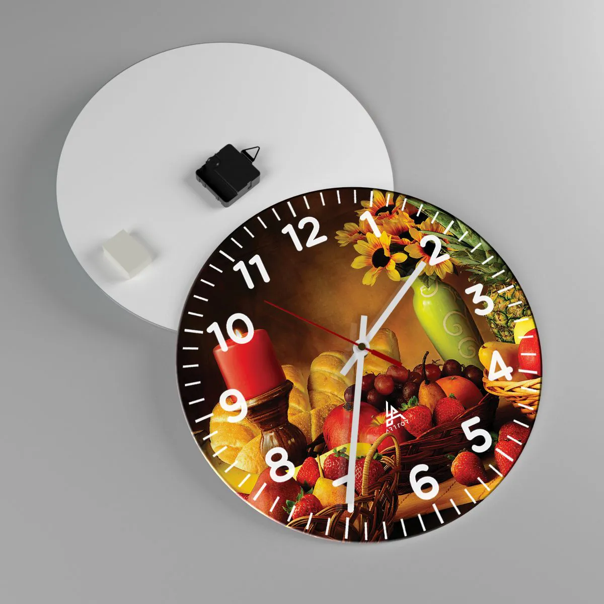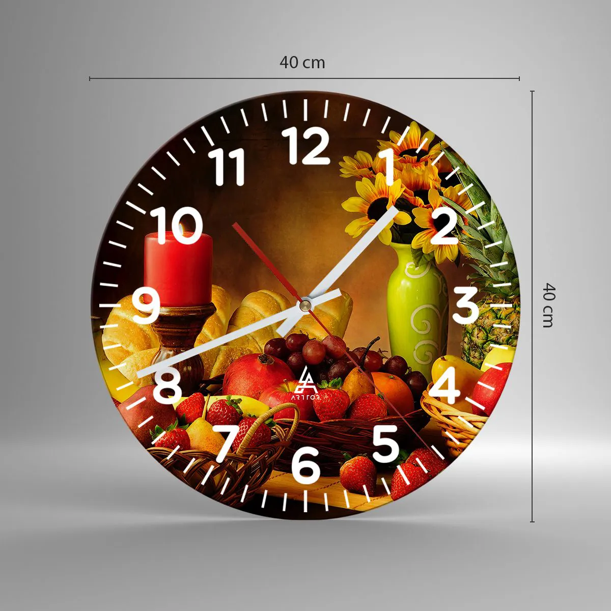 Wall clock - Clock on glass - Still Nature with Bread and Fruit - 40x40 cm