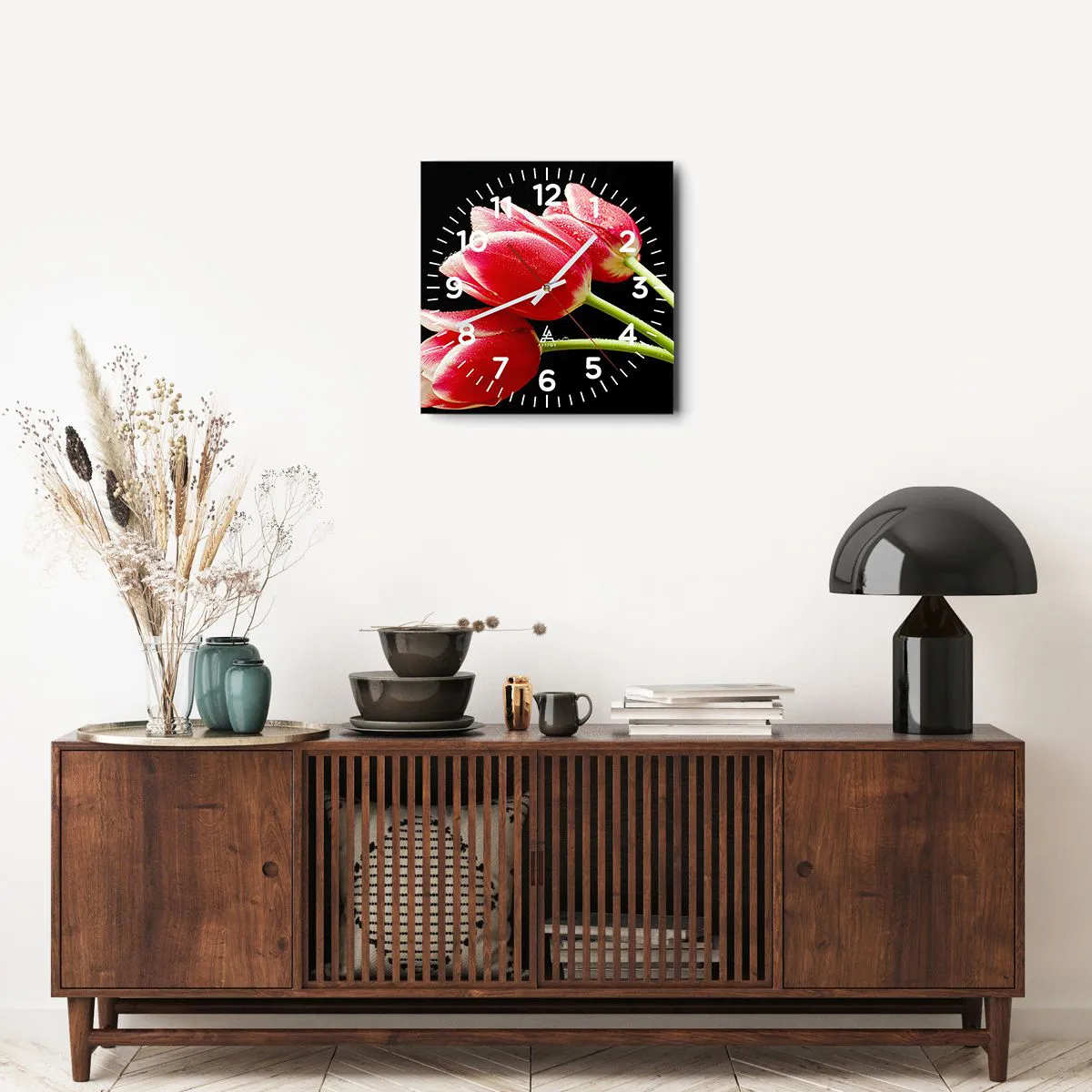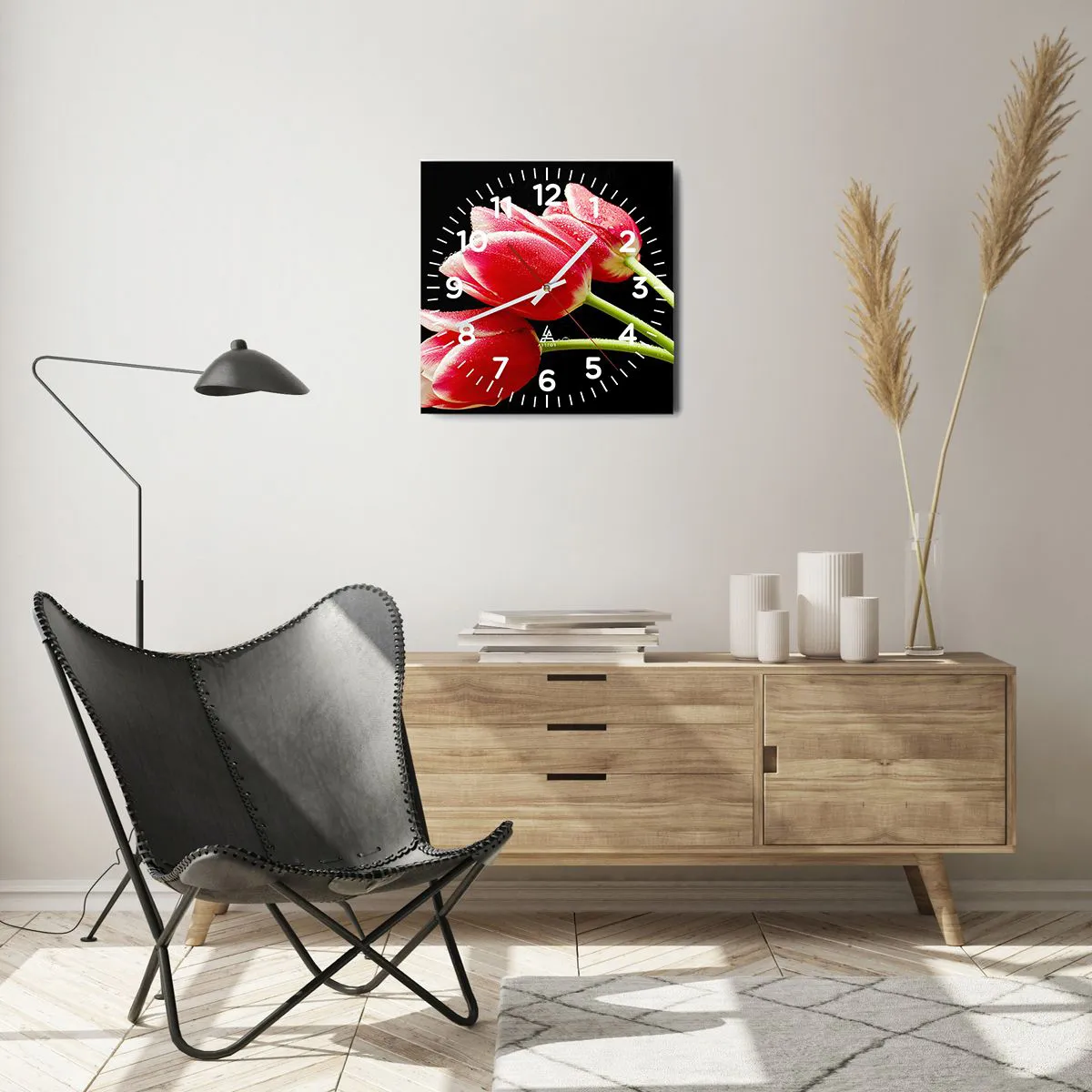 Clock is produced using modern printing technology - this guarantees the preservation of natural colours and high colour saturation. The production of glass clocks is carried out in several stages. A high-quality print and two protective layers are thermally bonded to the glass. We use innovative glass lamination press technology with the vacuum system.