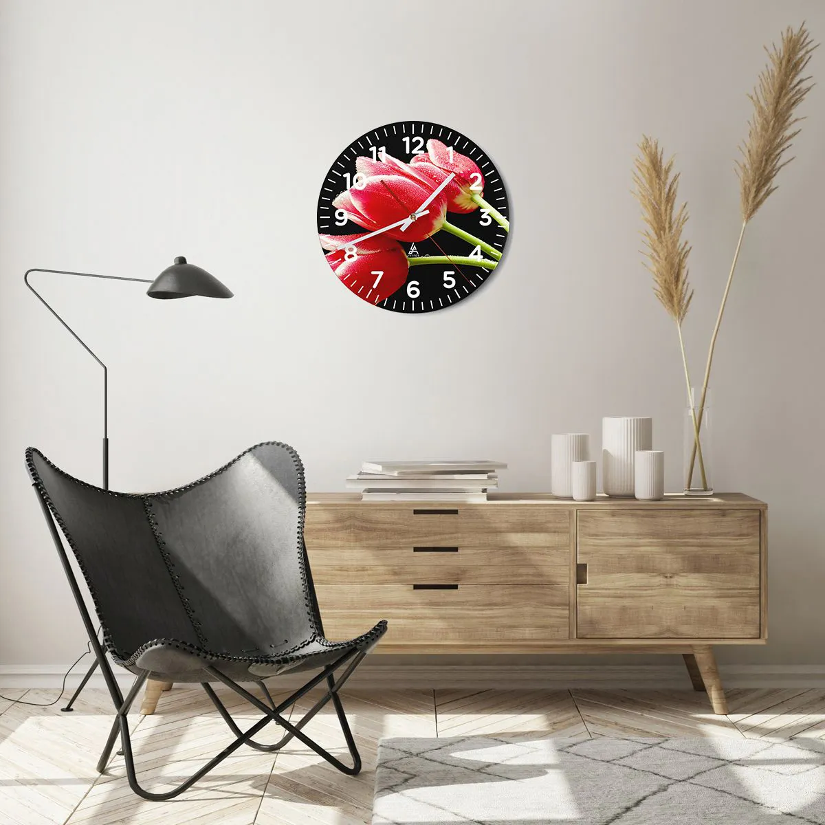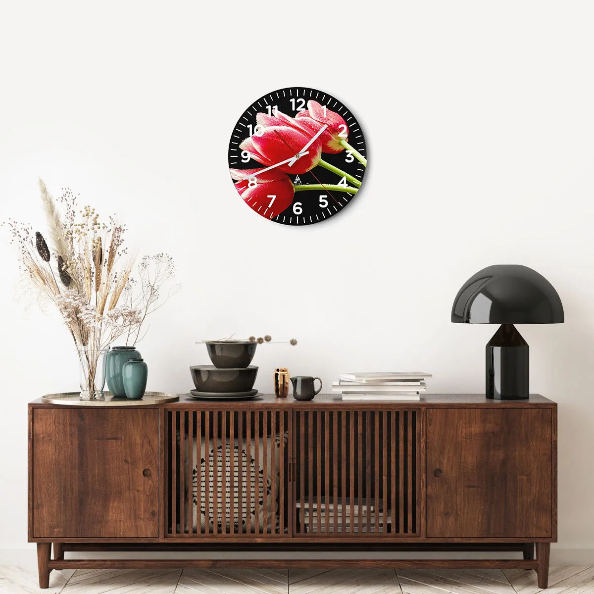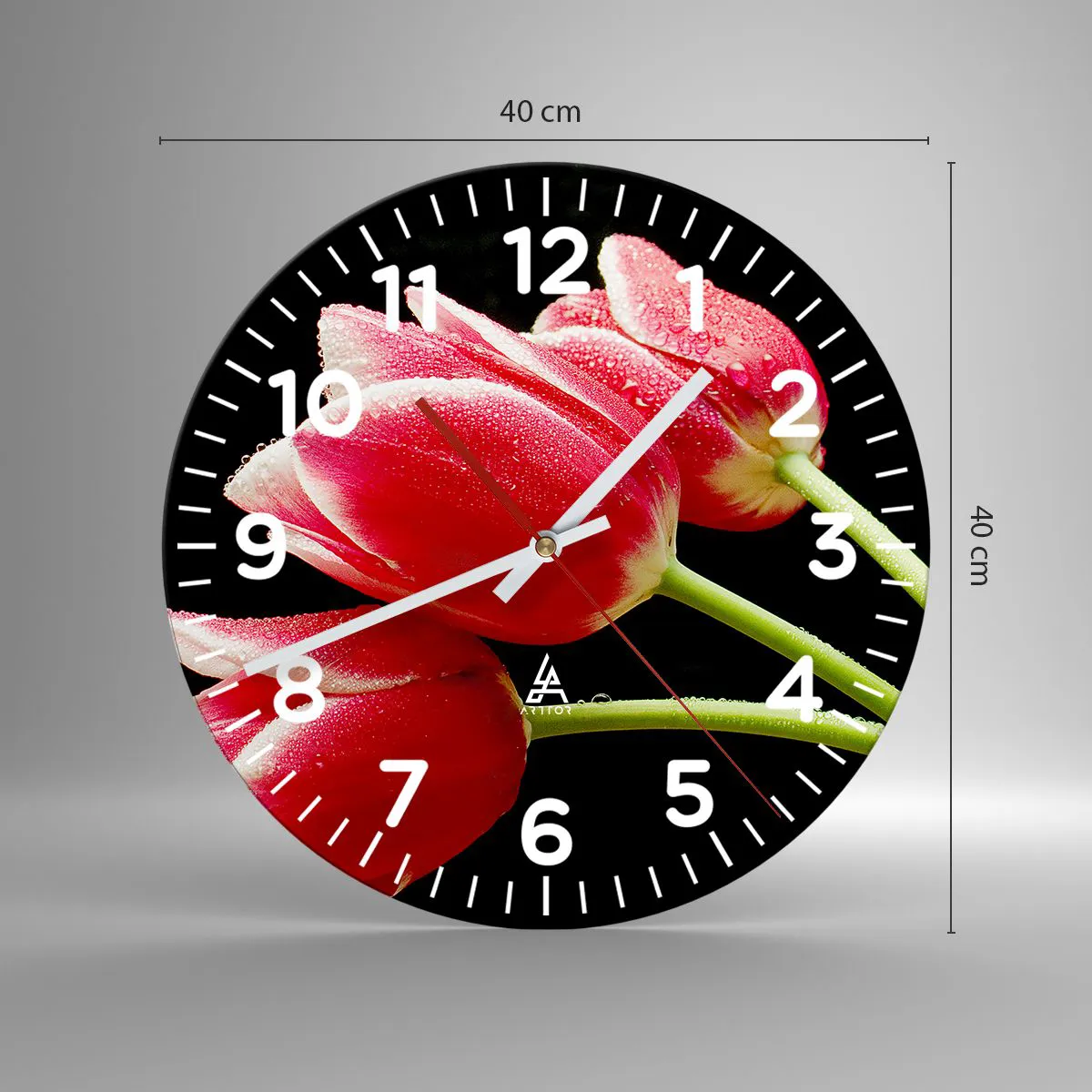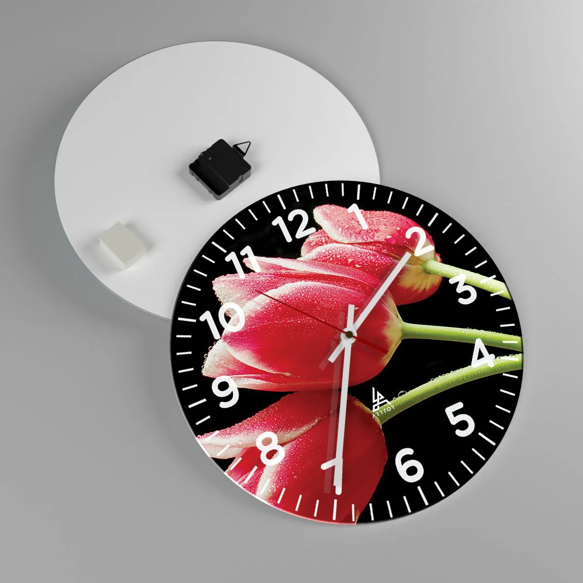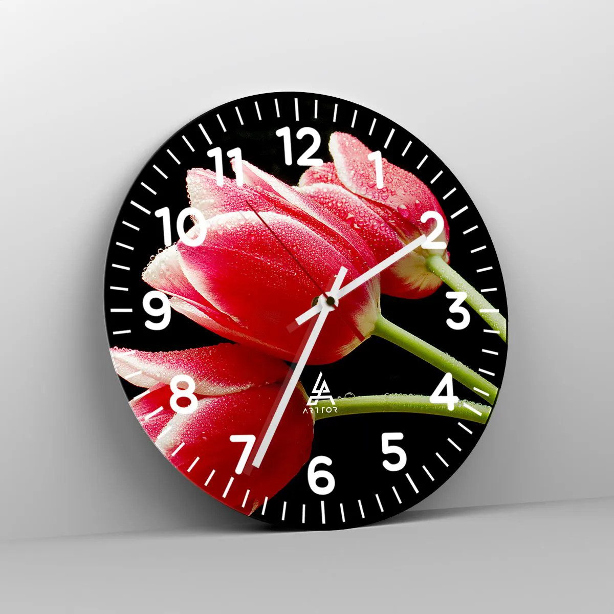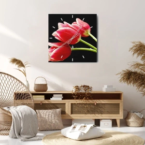 • Flowers, Tulips, Nature, Botany, Flowers, For the office, For the study, For the dining room, For the hall, For the living room, For the bedroom, Black, Red, Round