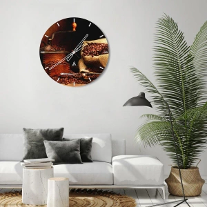 Wall clock - Clock on glass - Still Life with Coffee Grains and a Grinder - 40x40 cm