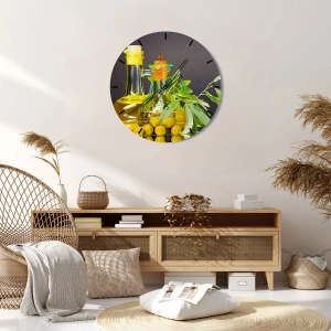 Wall clock - Clock on glass - Still Life with Olives and Olive Oil - 40x40 cm