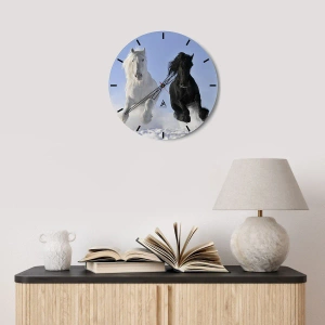 Wall clock - Clock on glass - Black and White Gallop - 30x30 cm
