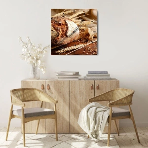 Wall clock - Clock on glass - Tasty, Fragrant, Crunchy - 30x30 cm