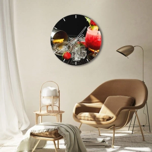 Conjure Flavor is an original wall clock that brings freshness and elegance to any interior. The motif depicts a strawberry cocktail decorated with toppings, surrounded by crushed ice and bar elements. It's the perfect decoration for lovers of stylish interiors and those who appreciate a tropical atmosphere and fruity motifs.