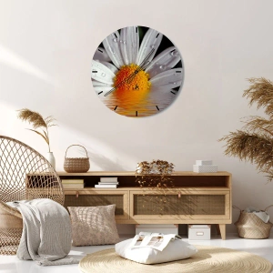 Rising Sun Daisy is a unique wall clock with a macro daisy motif, whose central element is the beauty of nature. Daisy petals with water droplets and its distinctive yellow center create a harmonious composition that brings peace and freshness to interiors. An ideal choice for lovers of nature and subtle decorations.