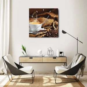 Wall clock - Clock on glass - Smell of a Mocha and Density of a Honey Drink - 40x40 cm