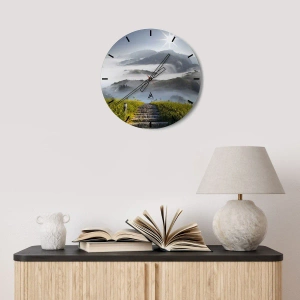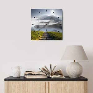 Wall clock - Clock on glass - Upwards towards the Clouds - 40x40 cm