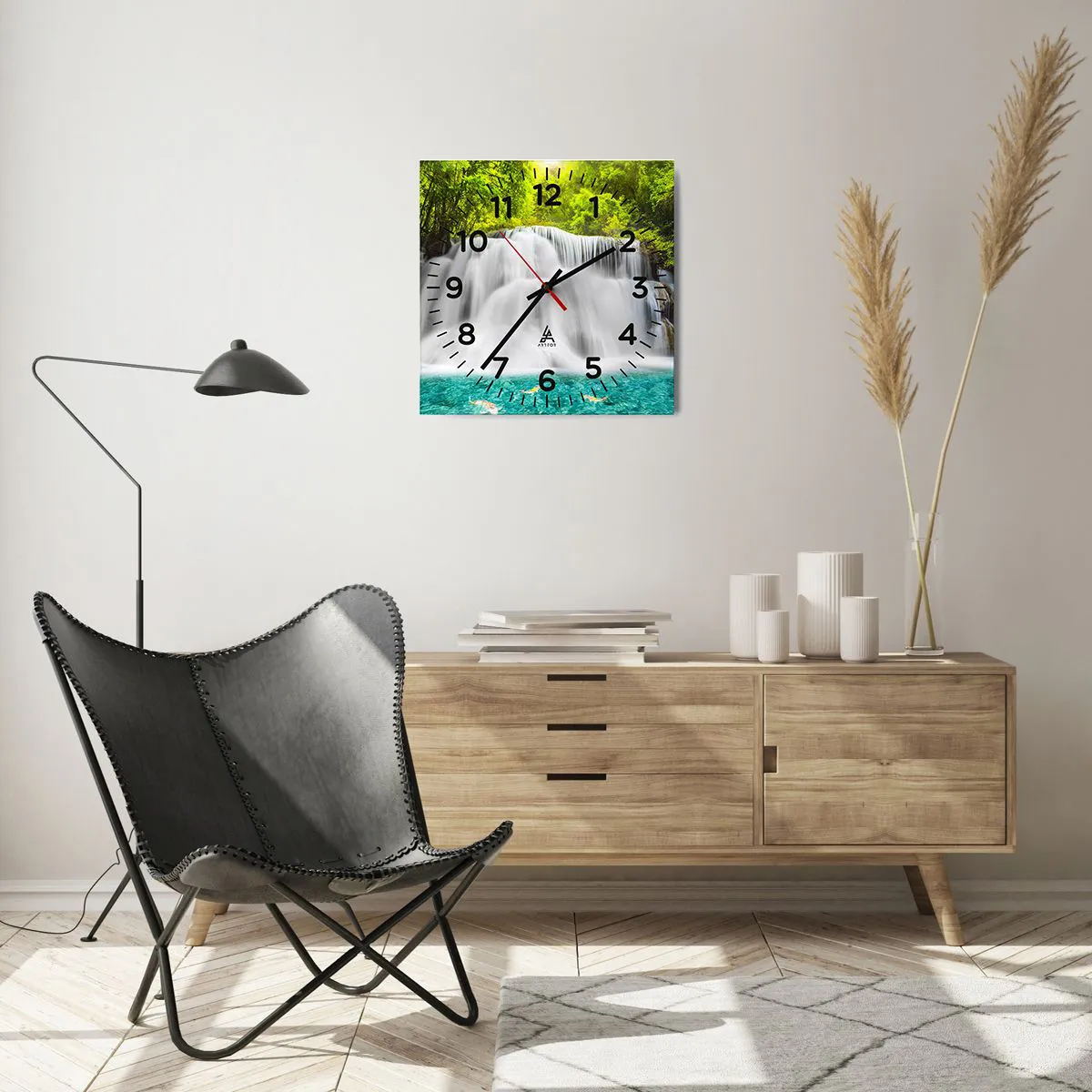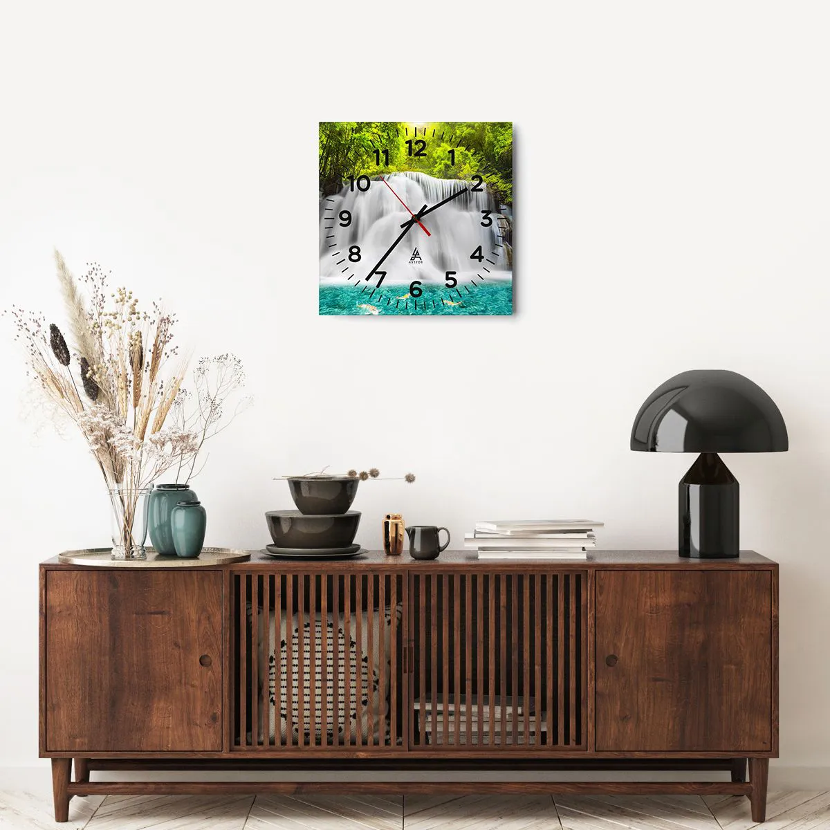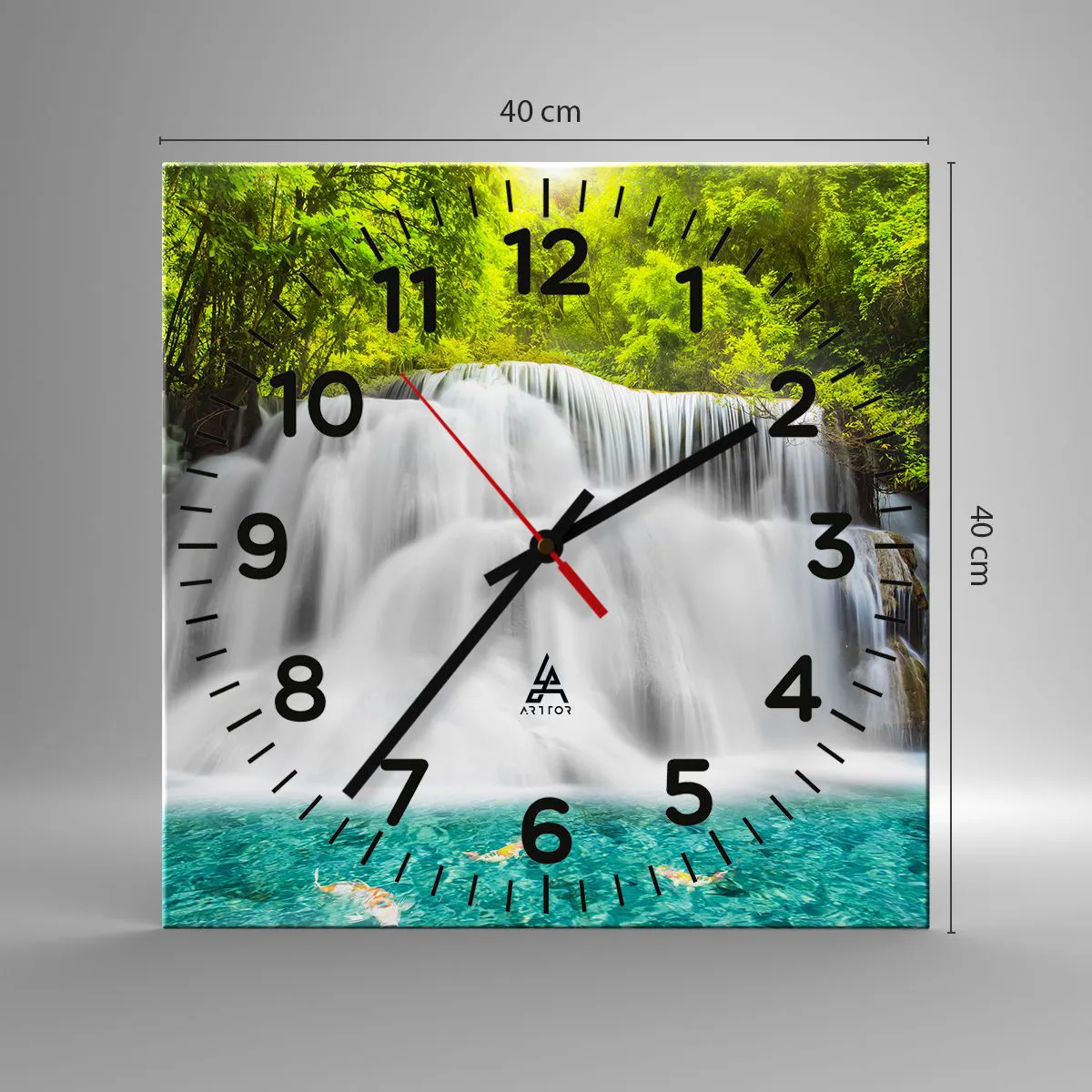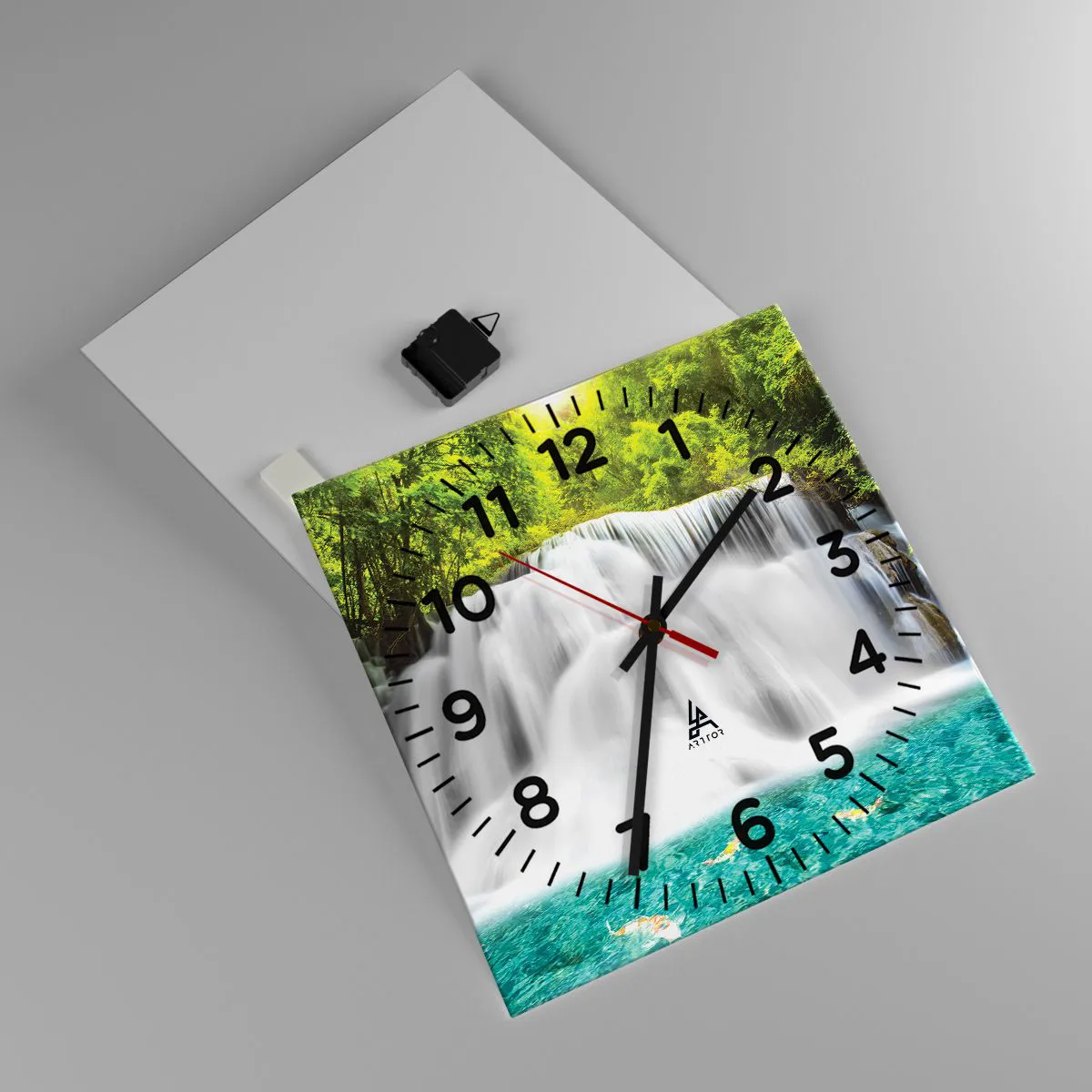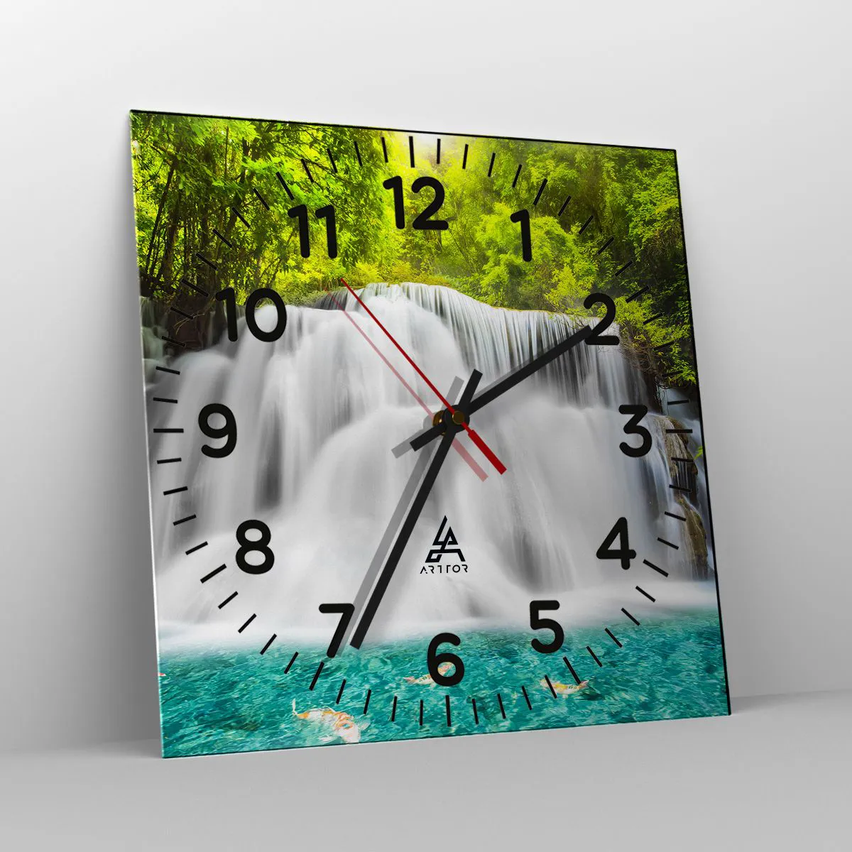 Wall clock - Clock on glass - Foamy Cascade from Green to Azure - 40x40 cm