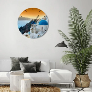 Wall clock - Clock on glass - Santorini - Snuggling up to the Rocks - 40x40 cm