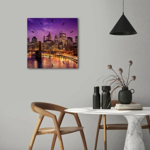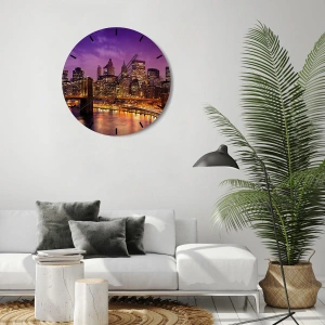 Wall clock - Clock on glass - Violet and Gold Manhattan - 30x30 cm