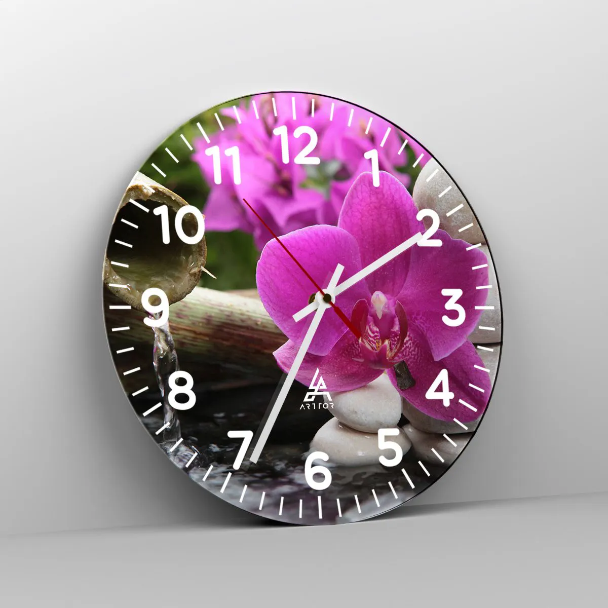 Clock is produced using modern printing technology - this guarantees the preservation of natural colours and high colour saturation. The production of glass clocks is carried out in several stages. A high-quality print and two protective layers are thermally bonded to the glass. We use innovative glass lamination press technology with the vacuum system.