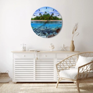 Wall clock - Clock on glass - Heavenly Island Invites You - 30x30 cm