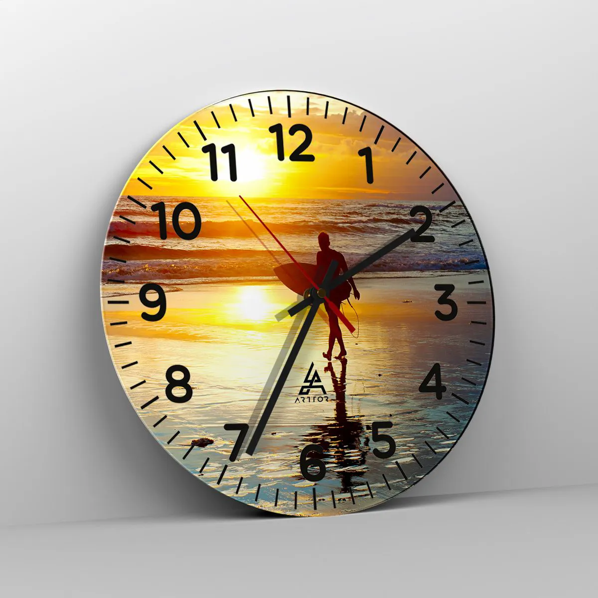 Clock is produced using modern printing technology - this guarantees the preservation of natural colours and high colour saturation. The production of glass clocks is carried out in several stages. A high-quality print and two protective layers are thermally bonded to the glass. We use innovative glass lamination press technology with the vacuum system.