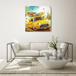 Wall clock - Clock on glass - Happy Travels - 30x30 cm